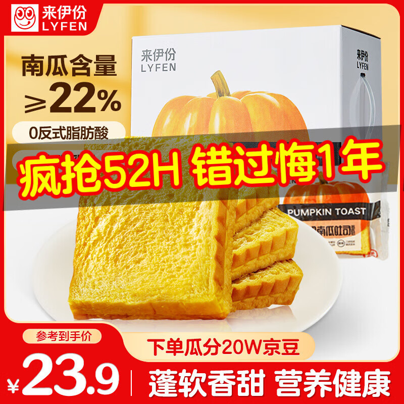 来伊份南瓜吐司750g手撕面包早餐代餐蛋糕糕点点心休闲零食整箱下午茶