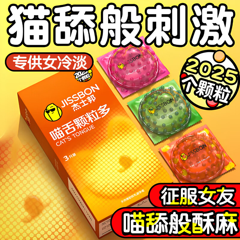 杰士邦避孕套女性快潮狼牙套棒螺纹安全套男专用持久延时大颗粒刺激超薄 【喵舌大颗粒】16只:喵舌情趣颗粒组16只