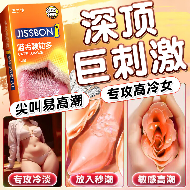 杰士邦避孕套女性快潮狼牙套棒螺纹安全套男专用持久延时大颗粒刺激超薄 【爆爽喵舌舔】18只:喵舌+颗粒超薄18只