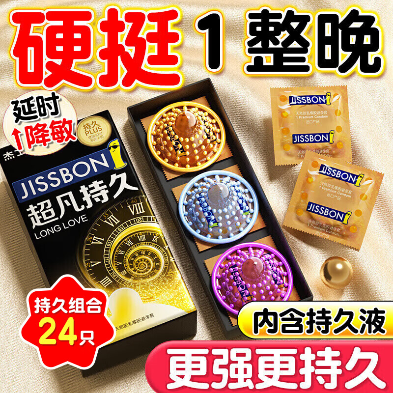 杰士邦超凡持久003延时避孕套男黄金安全套大颗粒狼牙螺纹套byt情趣用品 【持久性价比】24只:持久延时超薄组合24只