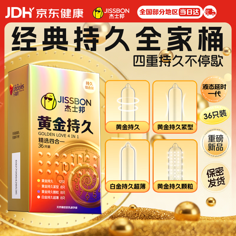 杰士邦延时避孕套安全套男专用持久黄金持久精选四合一36只防早泄敏感套