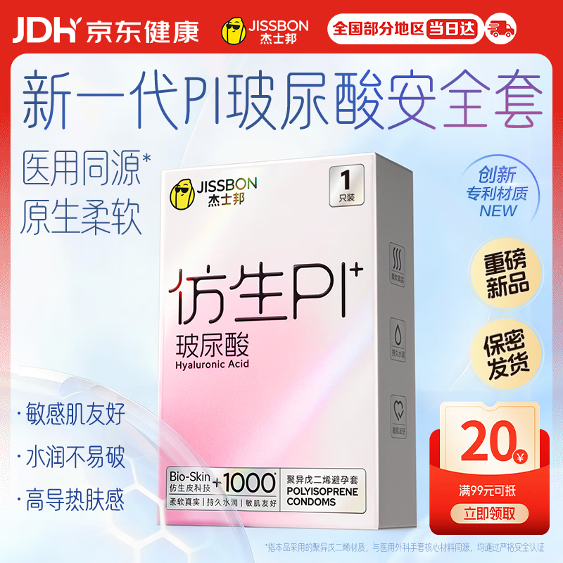 杰士邦避孕套仿生皮PI玻尿酸1只安全套套超薄防过敏成人计生用品byt
