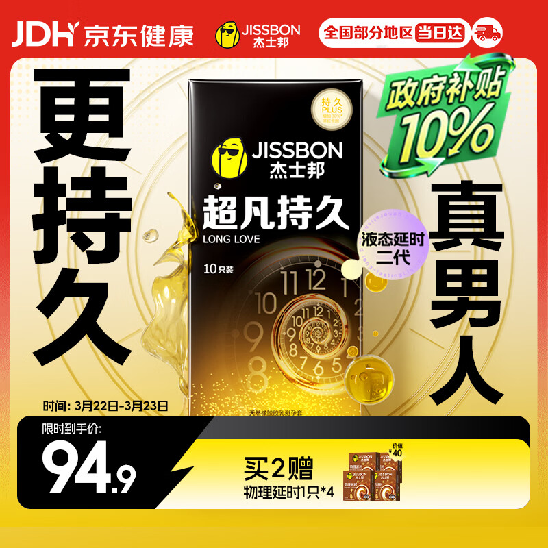 杰士邦液态延时避孕套黄金持久10只安全套套超薄男专用持久防早泄敏感套