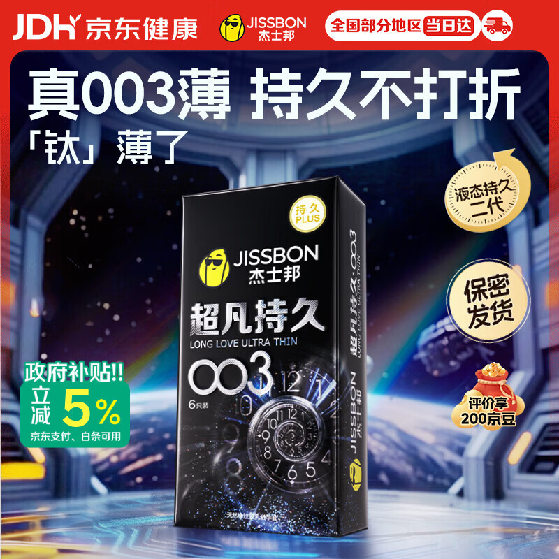 杰士邦避孕套超凡持久003延时6只安全套套超薄男专用防早泄敏感套byt