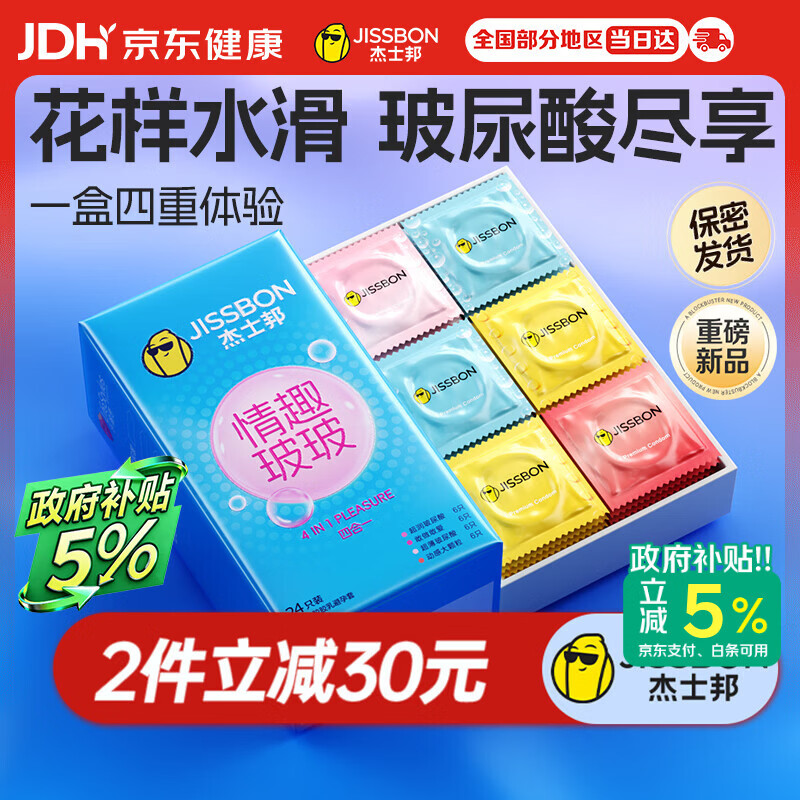 杰士邦超薄避孕套带刺阴情趣四合一24安全套套女性快潮计生用品随机发货