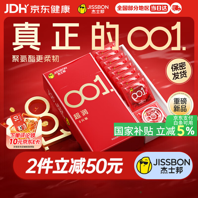 杰士邦避孕套超薄001裸感超润9只安全套套隐形裸水性聚氨酯计生情趣byt