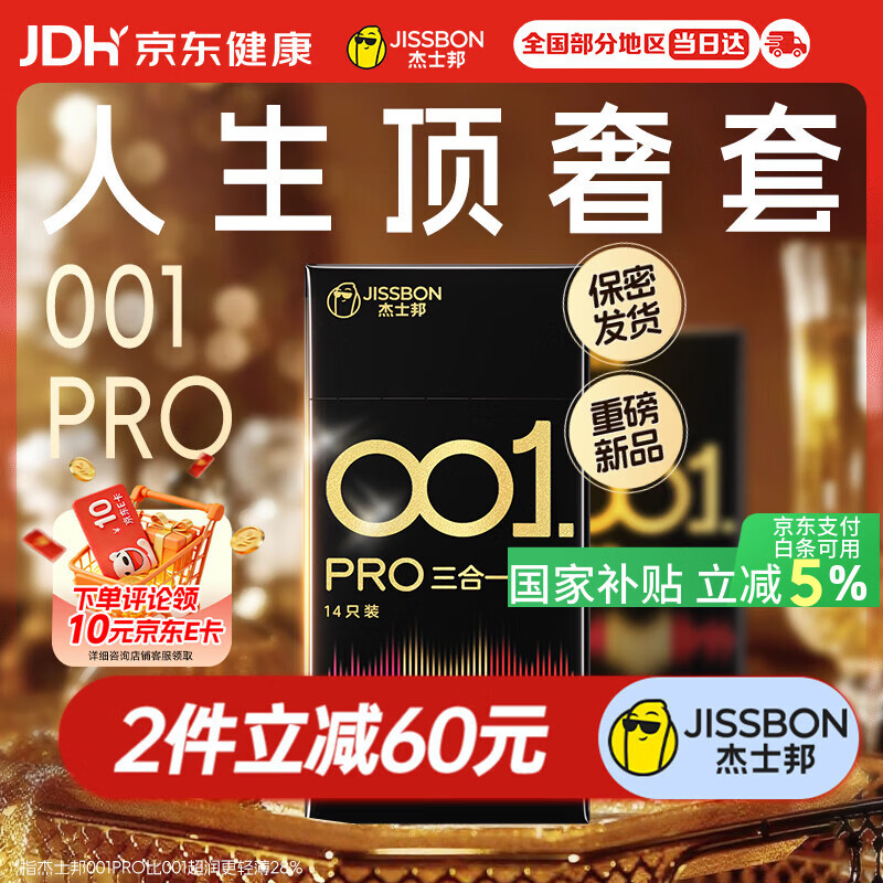 杰士邦避孕套超薄001裸感PRO黑金三合一14只安全套套隐形裸计生情趣byt