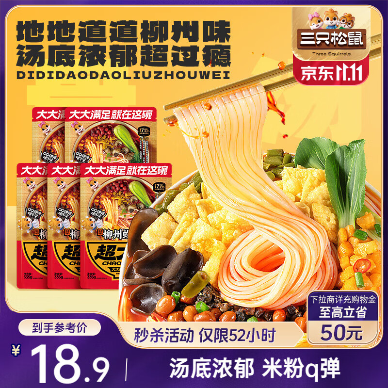三只松鼠螺蛳粉335g*5袋箱装米粉米线广西柳州特产酸辣夜宵方便速食零食