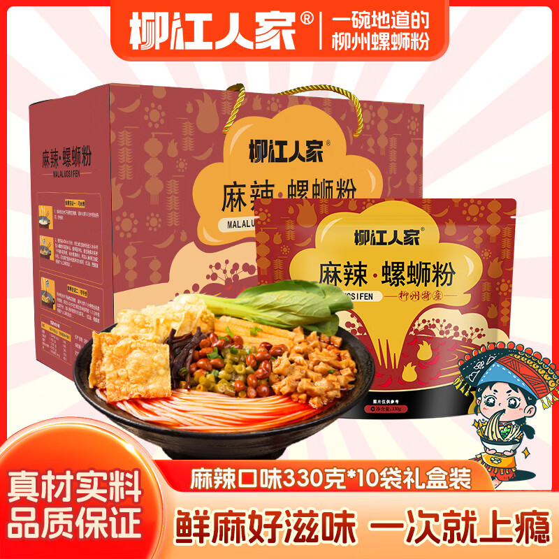 柳江人家年货送礼柳州正宗螺蛳粉5包10包礼盒广西特产网红螺狮粉速食米线 浓汤原味330gx10袋礼盒