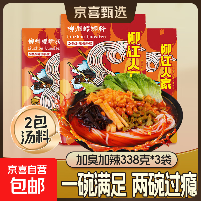 【柳江人家】加臭加辣338g*3袋柳州螺蛳粉广西特产速食螺丝粉 加臭加辣338g*3包(3大料包升级)