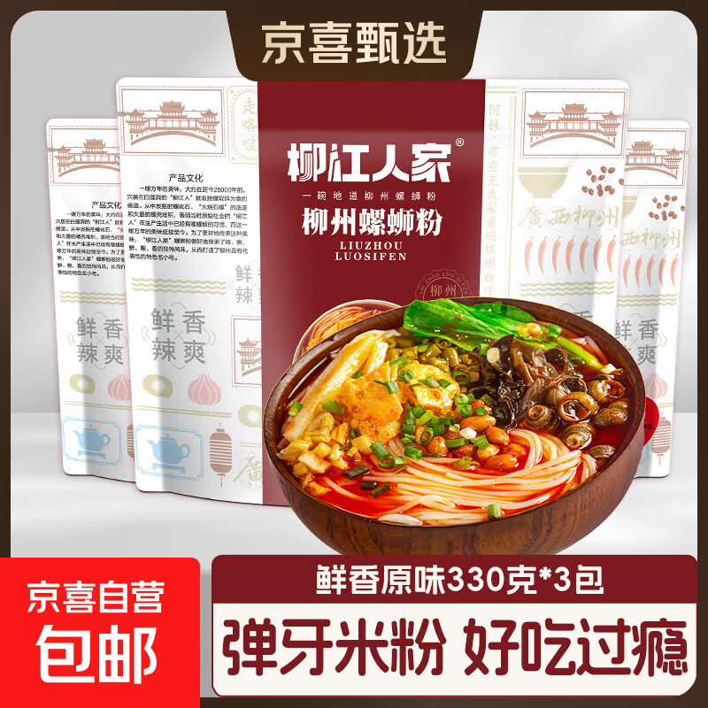 【柳江人家】正宗柳州螺蛳粉330g*3包广西特产速食方便面螺狮粉 经典原味330g*3袋