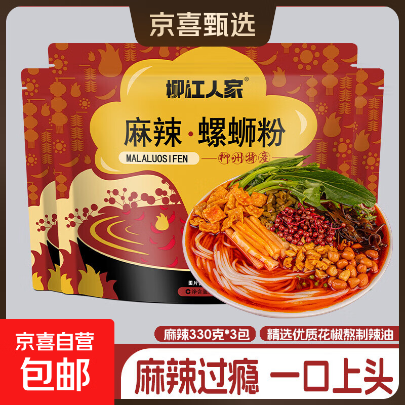 【柳江人家】正宗柳州螺蛳粉330g*3包广西特产速食方便面螺狮粉 川香麻辣330g*3袋