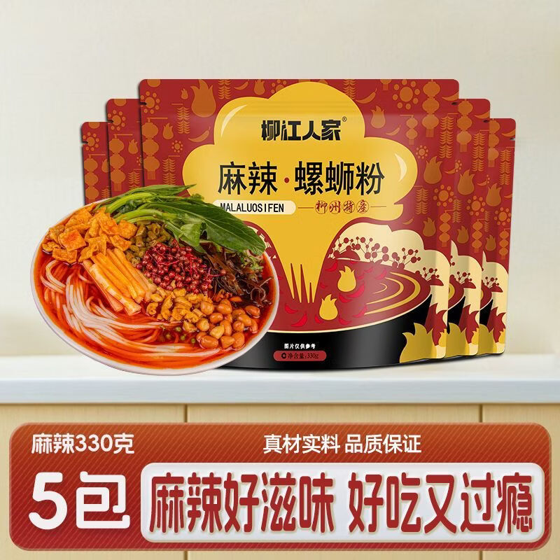 柳江人家柳江人家螺蛳粉麻辣味330g*5袋装柳州特产方便广西螺蛳粉速食米粉 麻香辣爽330gx5袋