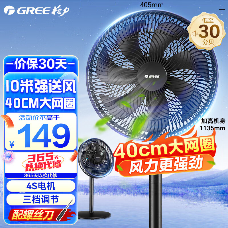 格力(GREE)电风扇家用落地扇客厅低噪省电七叶大风量落地风扇节能摇头立式办公宿舍床头空气循环扇电扇 【黑色】七叶强风 14吋升级加大 35X65h7