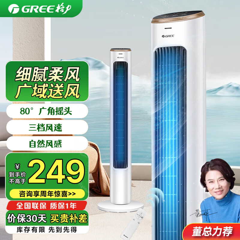 格力(GREE)(GREE)塔扇定时塔扇家用节能电风扇卧室柔风低燥立式无叶风 【机械款】FL-08X61g