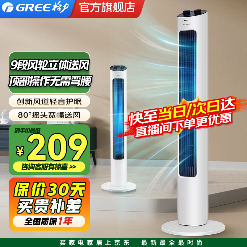 格力(GREE)空调扇塔扇无叶风扇家用电风扇低燥轻音电塔式遥控立式风扇台式定时风扇落地 FL-08X62Bg 带遥控