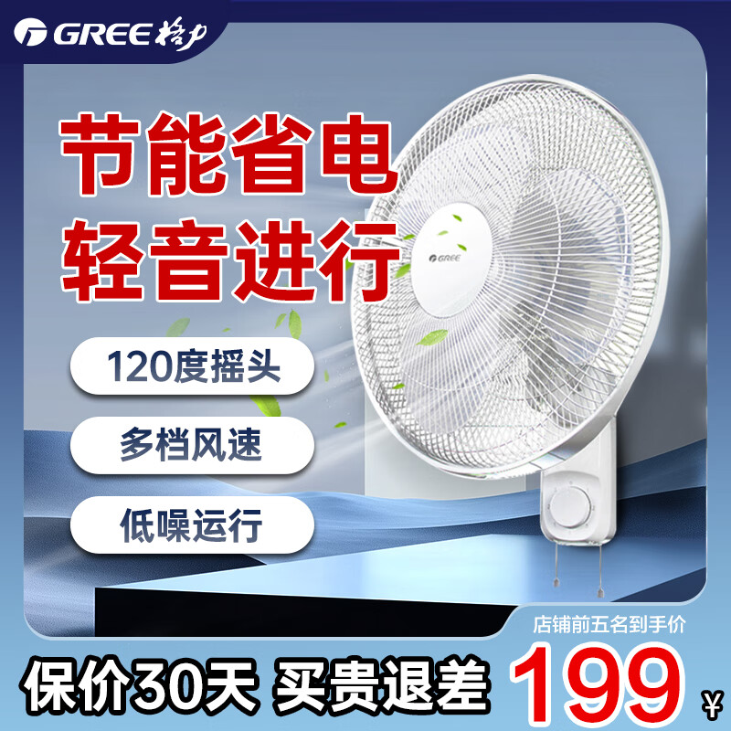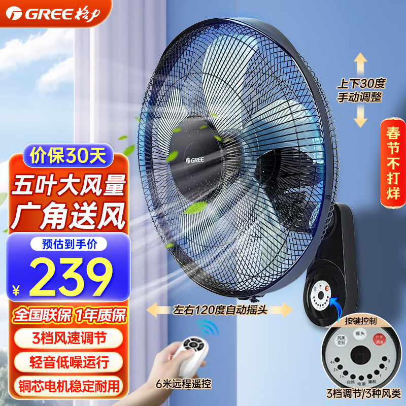 格力(GREE)壁扇大风量壁挂式电风扇家用五叶智能遥控挂壁扇摇头定时轻音办公室宿学校舍餐厅商铺电扇 FB-4006B遥控款