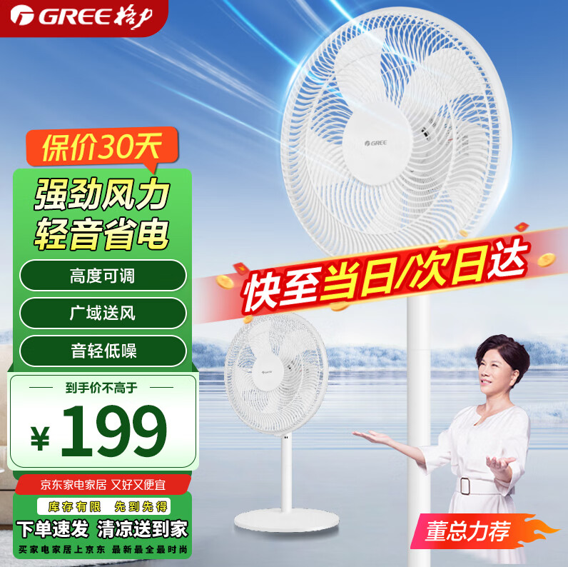 格力(GREE)【全新升级】七叶轻音立式电风扇家用柔风落地扇台式桌面风扇大风量节能宿舍电扇 FS-3015h7