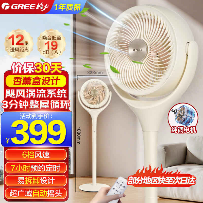 格力(GREE)【许我耀眼推荐】空气循环扇台地电风扇落地扇循环左右摇头轻噪对流香薰驱蚊循环扇 FXD-1903g3