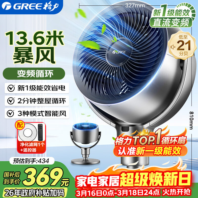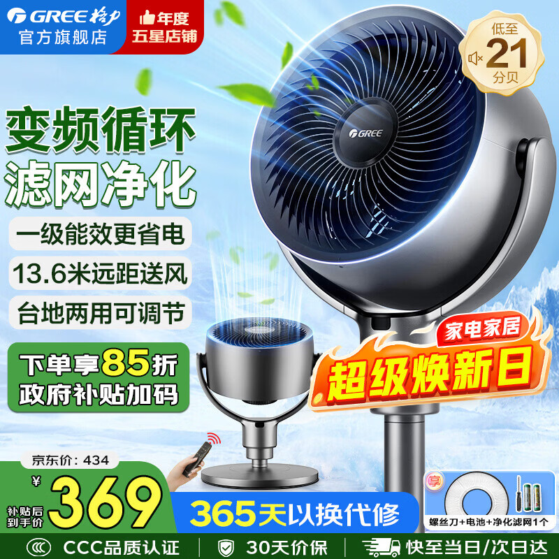 格力(GREE)【织风者AI+】一级能效直流变频轻音空气循环扇家用语音遥控电风扇香薰双重净化抑菌落地扇