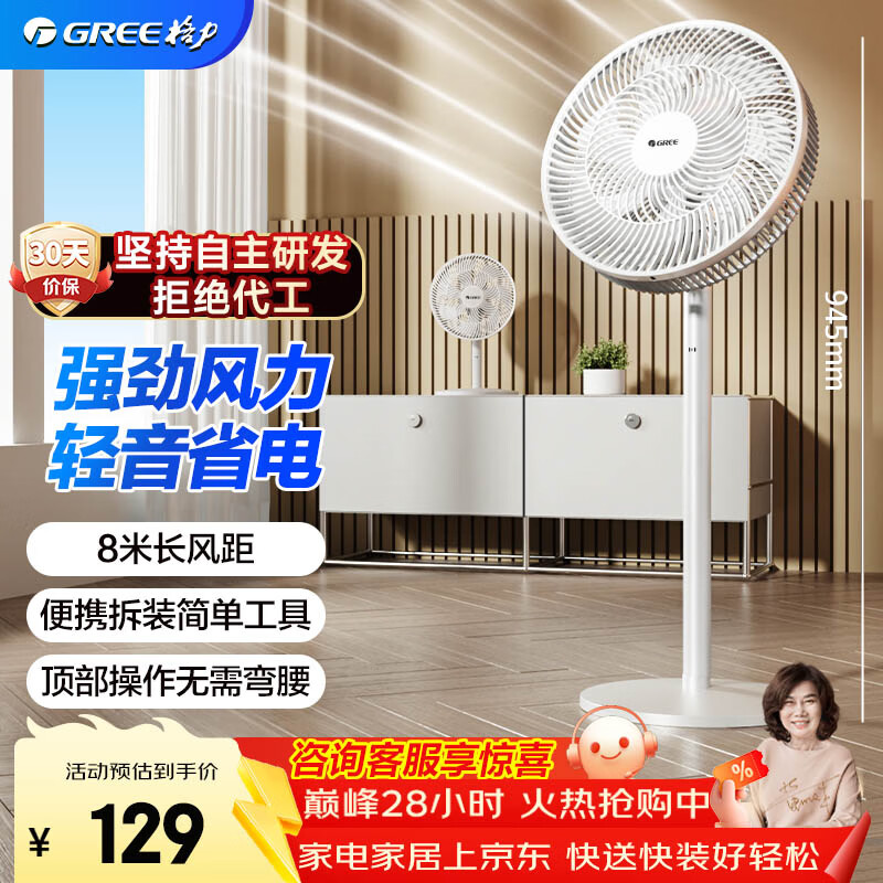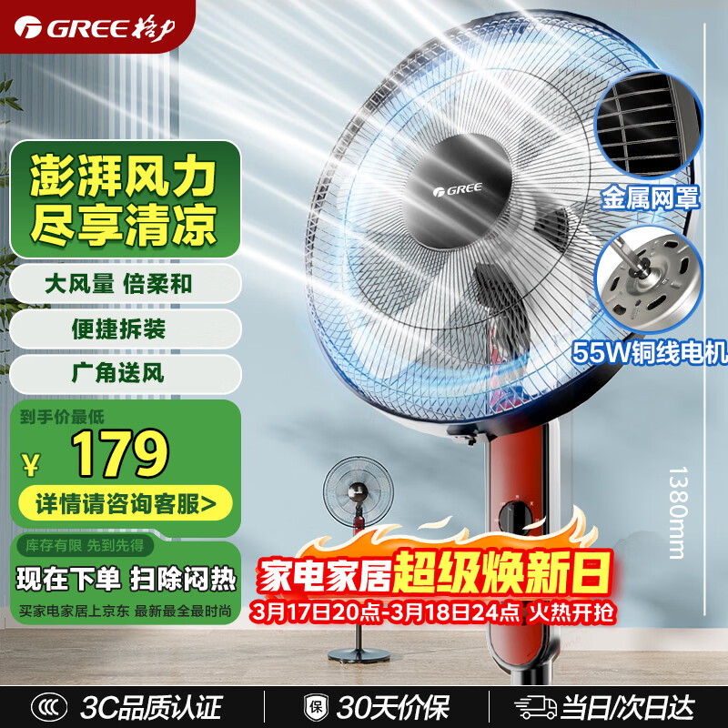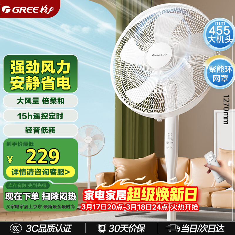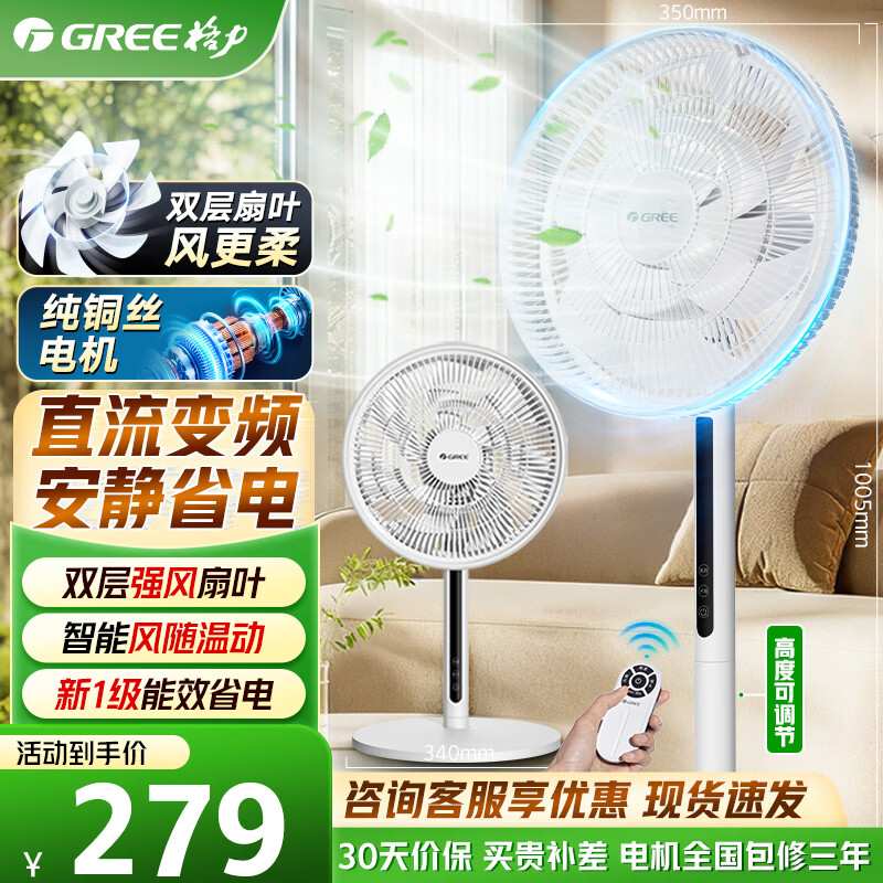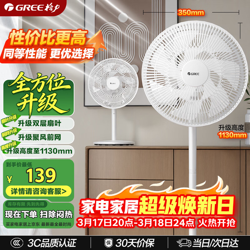 格力(GREE)【全新升级】双层12扇叶轻音立式电风扇家用柔风落地扇台式桌面风扇大风量节能宿舍电扇 FS-3015h7