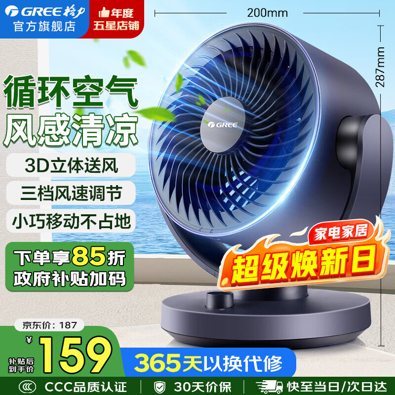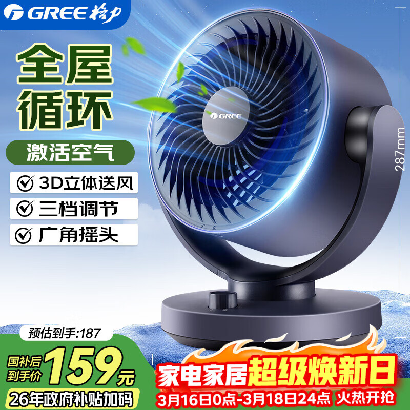 格力(GREE)空气循环扇家用电风扇台式桌面小风扇卧室办公宿舍摇头电扇节能大风量排气扇涡轮对流换气空调伴侣 循环空气 风感清凉-机械款(FXT-1505g3)