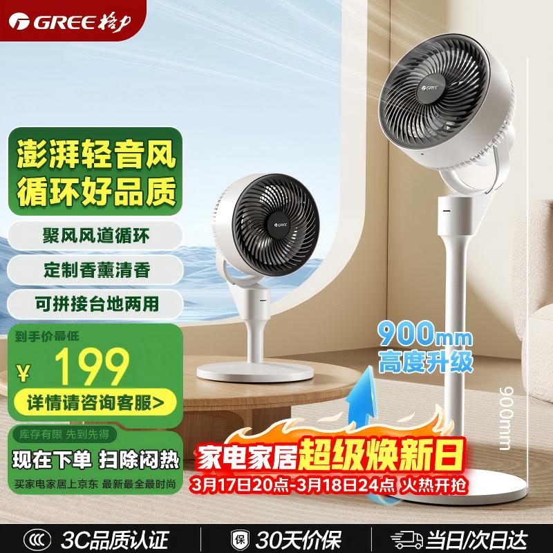 格力(GREE)电风扇家用空气循环扇客厅卧室办公宿舍落地扇涡轮对流换气扇台式桌面小风扇广角摇头台地两用电扇 【旗舰负离子香薰遥控】清新循环风 1905Bg3