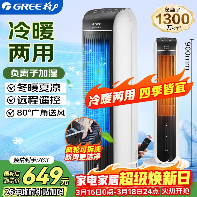 格力(GREE)【冷暖两用】冷风空调扇制冷风扇家用水冷风机电风扇取暖器暖风机负离子加湿加水降温KS-04S68RDg