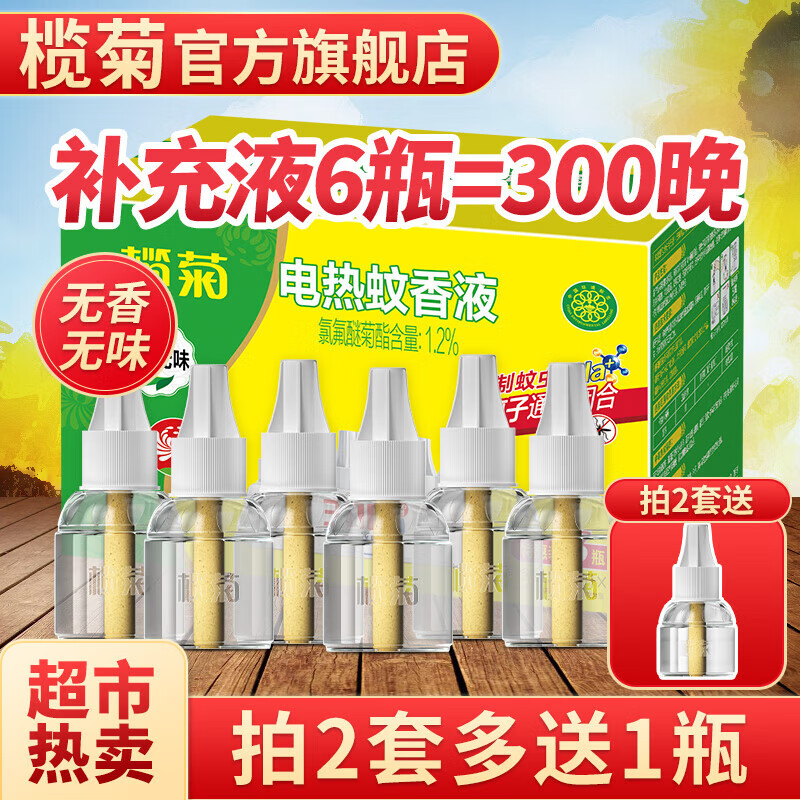 榄菊基孔肯雅热电蚊香液6瓶300晚补充装无香驱蚊液替换装电蚊香补充液