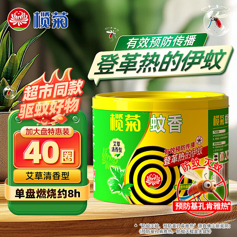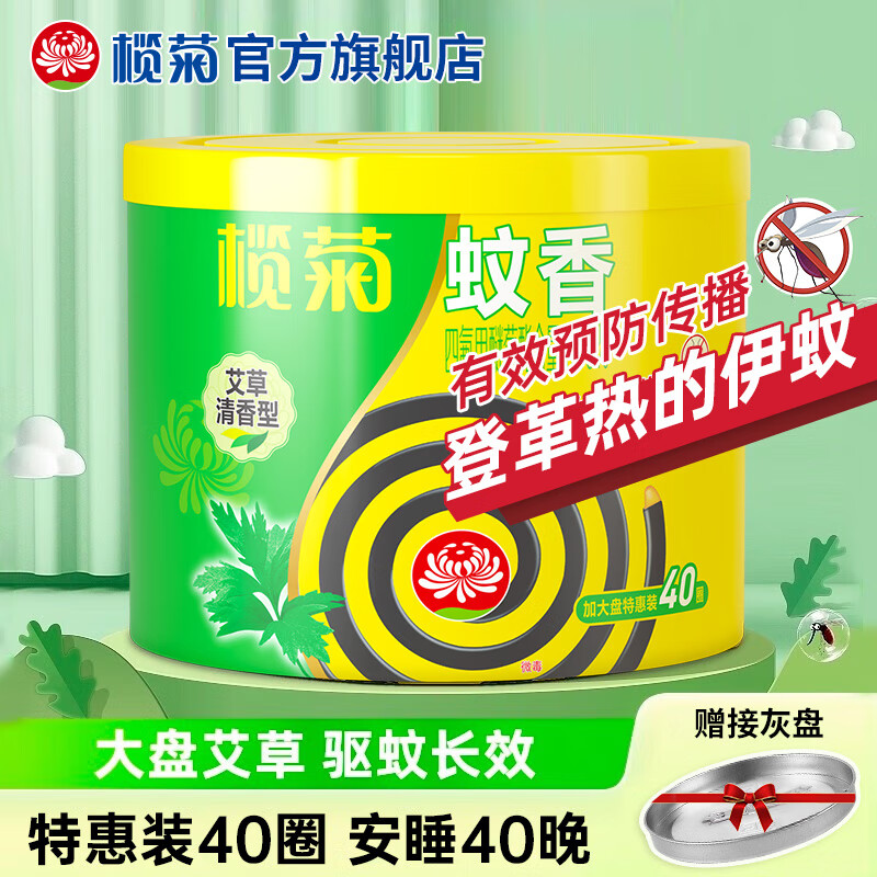 榄菊蚊香加大盘艾草清香型家用驱蚊黑蚊香盘式灭蚊盘香 艾草型蚊香40圈*1盒