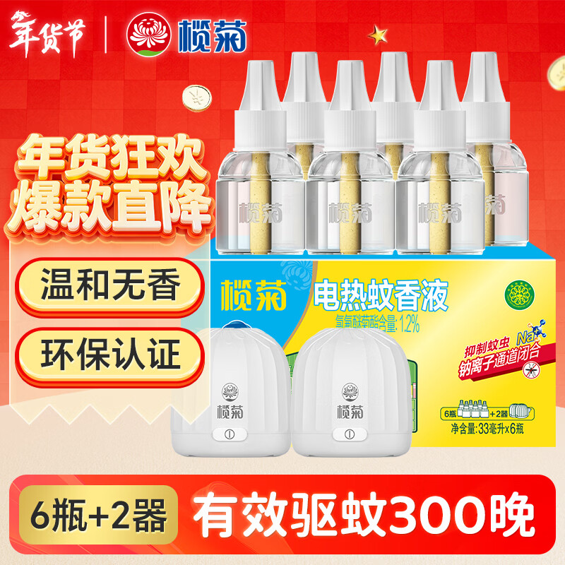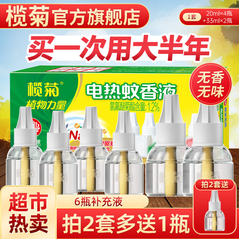 榄菊电蚊香液6瓶+2器 无香型菊之语热门商品电热蚊香液电蚊香驱蚊液