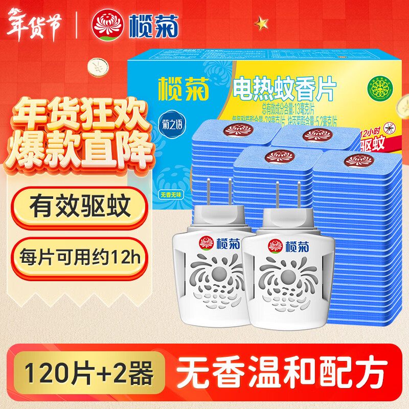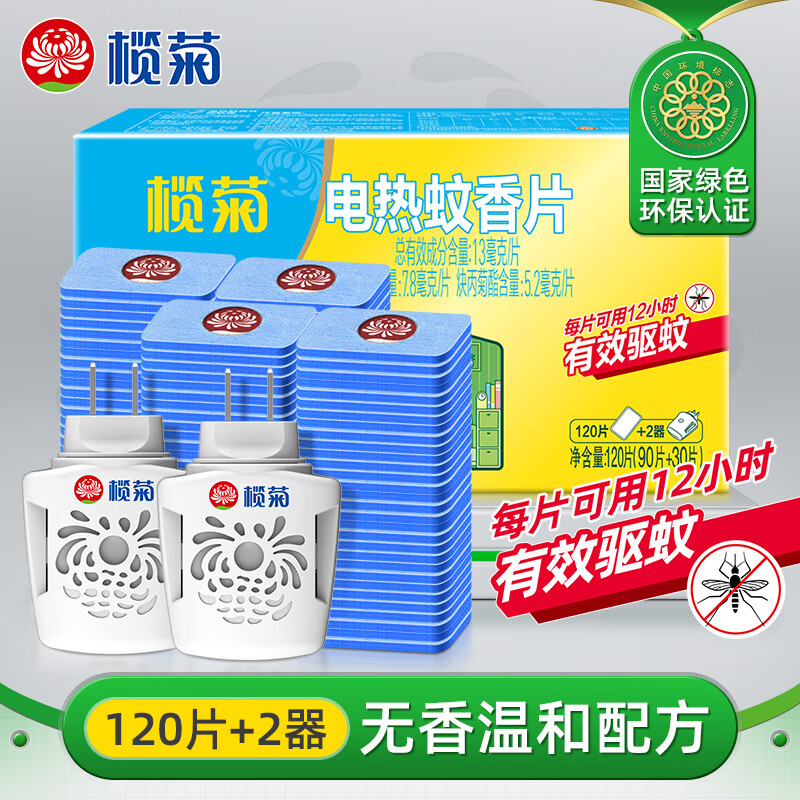 榄菊电蚊香片120片+2器 无香型电蚊香防蚊片补充装驱蚊灭蚊电热蚊香片