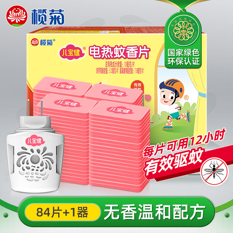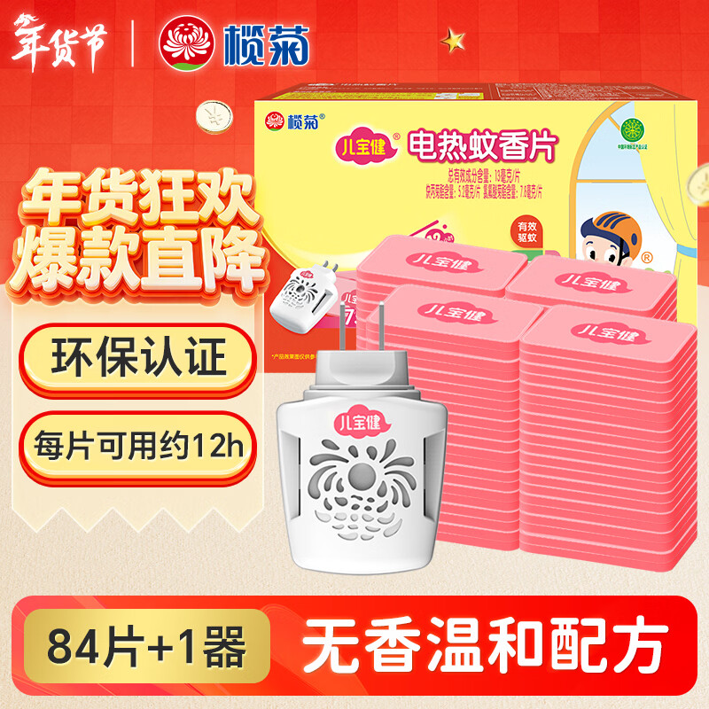 榄菊儿宝健电热蚊香片84片+1器 无香型热门商品驱蚊防蚊片电蚊香片