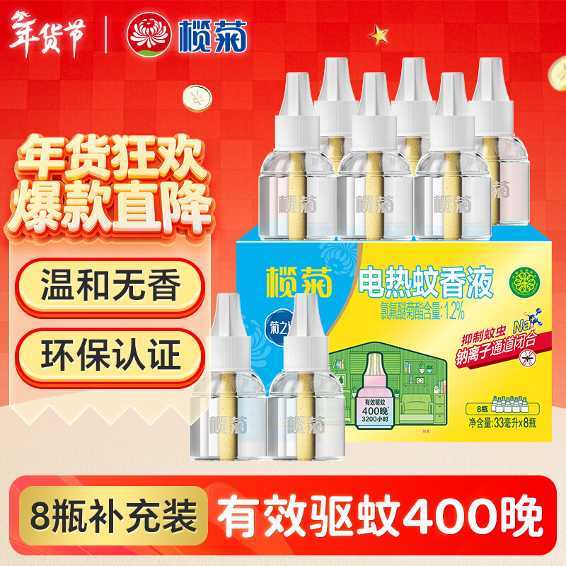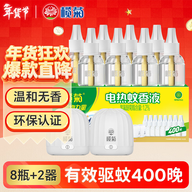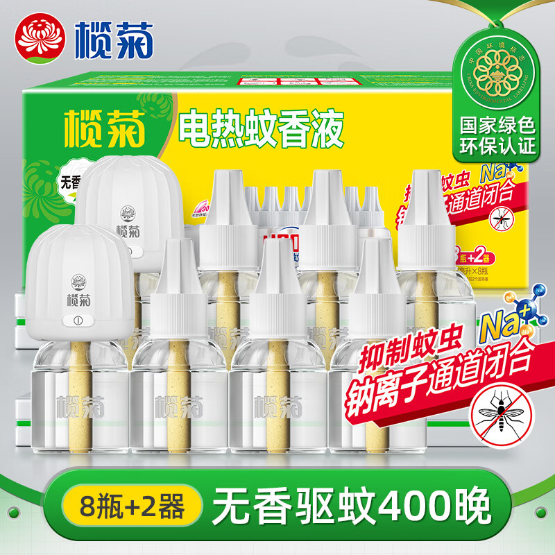 榄菊电蚊香液400晚33ml*8瓶+2加热器 无香防蚊电蚊香热门商品驱蚊液