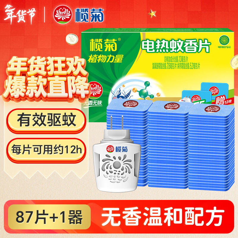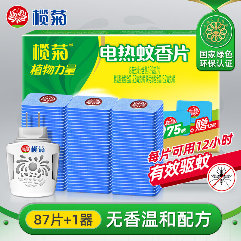 榄菊电蚊香片87片+加热器 无香型驱蚊防蚊片电蚊香灭蚊片电热蚊香片
