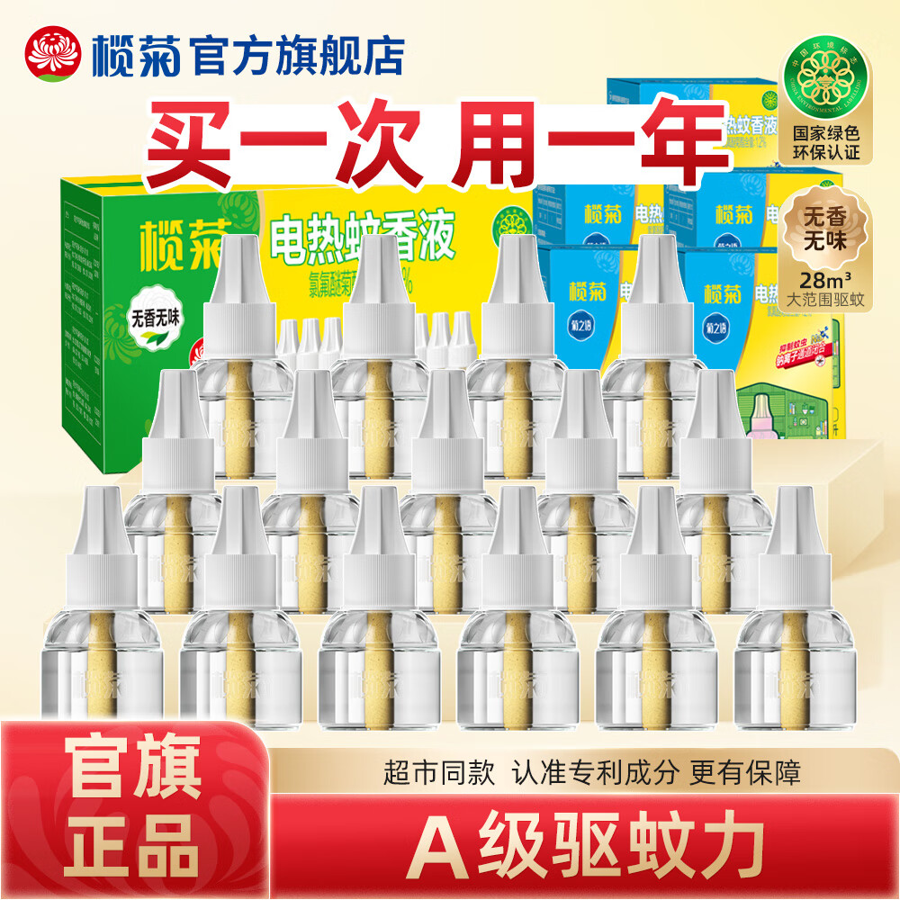 榄菊蚊香液驱蚊液非无毒家用无香型灭蚊器无味电热驱蚊水 无香15瓶(不含器)