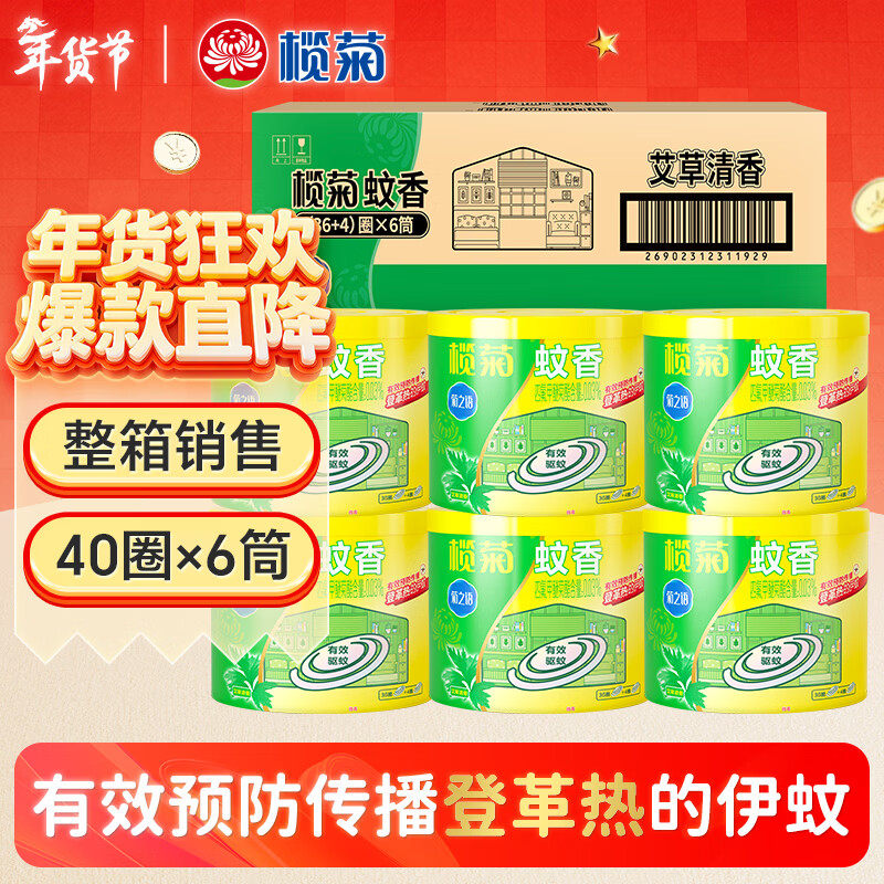 榄菊蚊香40圈*6筒(整箱销售) 艾草香型蚊香盘基孔肯雅热驱蚊盘香