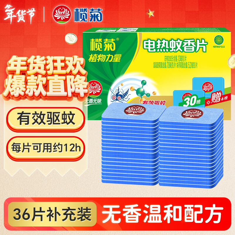 榄菊电热蚊香片36片无香型补充装不带器电蚊香驱蚊防蚊片灭蚊电蚊香片