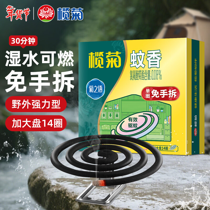 榄菊免拆蚊香14圈盒装 强力型蚊香盘基孔肯雅热便携家用免手拆盘香