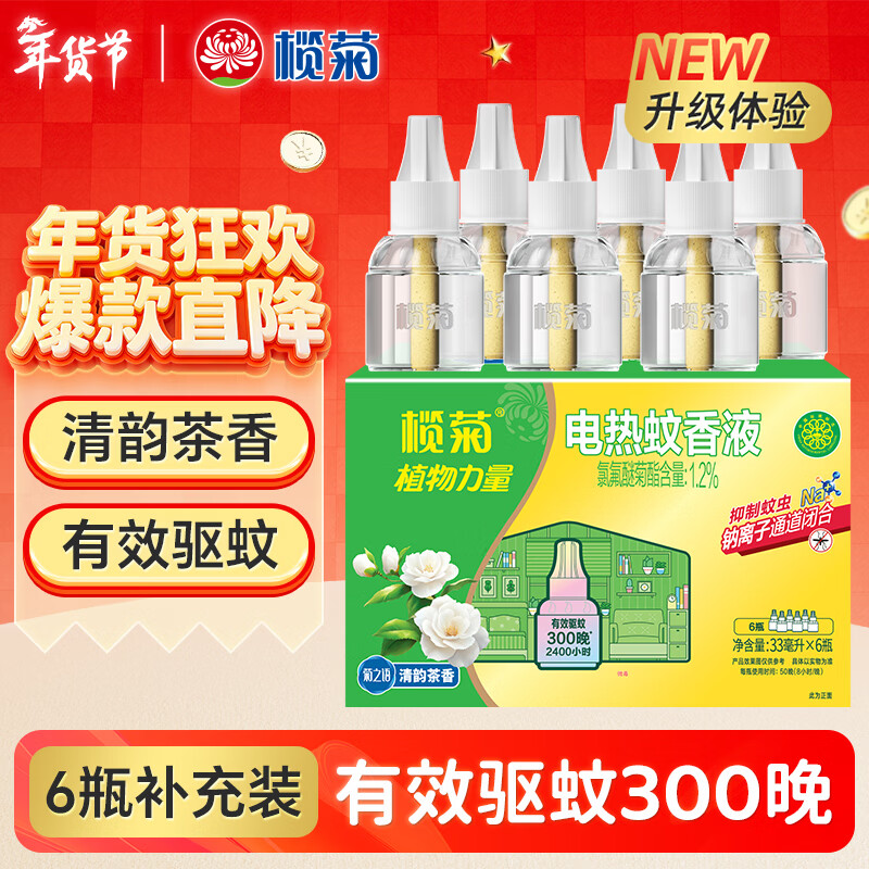 榄菊电蚊香液6瓶 清韵茶香补充装驱蚊液替换装菊之语电蚊香补充液