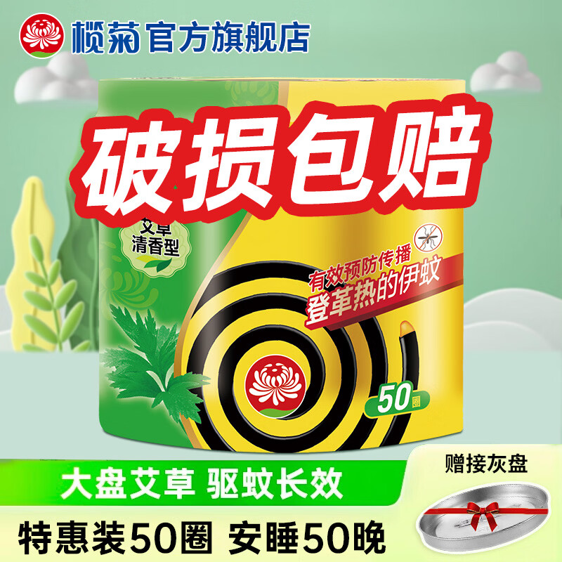 榄菊蚊香加大盘艾草清香型家用驱蚊黑蚊香盘式灭蚊盘香 艾草型蚊香50圈*1盒