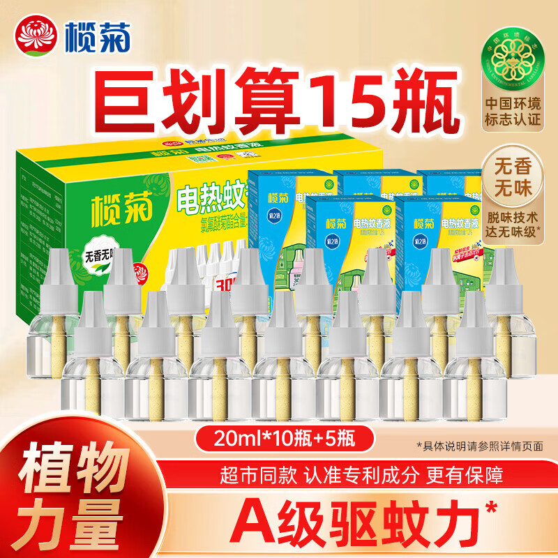 榄菊蚊香液驱蚊液非无毒家用灭蚊器无味电热驱蚊水 【热销推荐】15瓶(不含器)