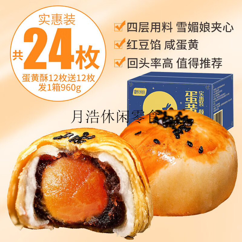 欧贝拉咸蛋黄酥零食整箱夜宵充饥早餐休闲食品面包整箱糕点心雪媚娘小吃 实惠装蛋黄酥12枚+12枚(共24枚
