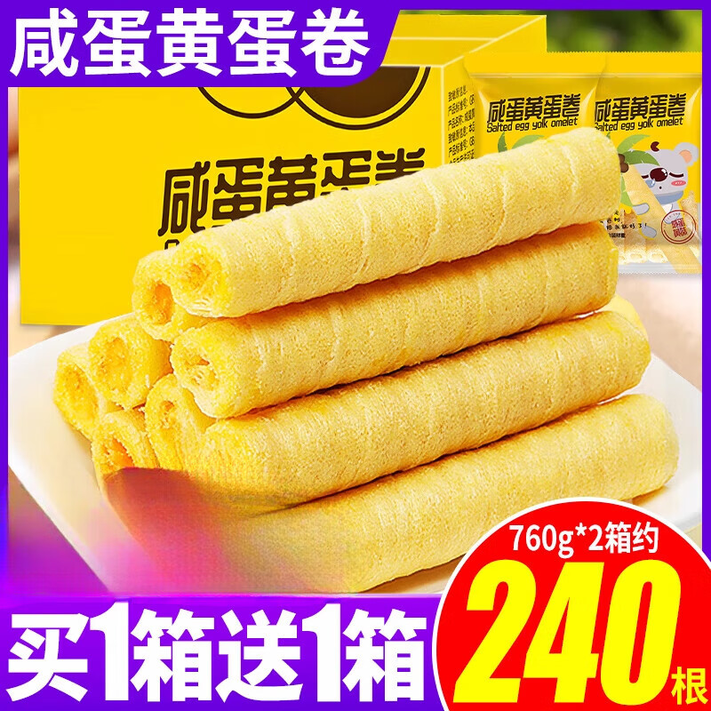 欧贝拉 咸蛋黄蛋卷鸡蛋卷心酥凤凰卷饼干整箱早餐代餐小零食小吃休闲食 蛋卷760g/箱