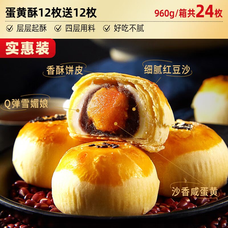 欧贝拉蛋黄酥雪媚娘整箱流心糕点点心面 面包芝士零食品小吃独立包装旗 【共24枚】蛋黄酥12枚+送12枚
