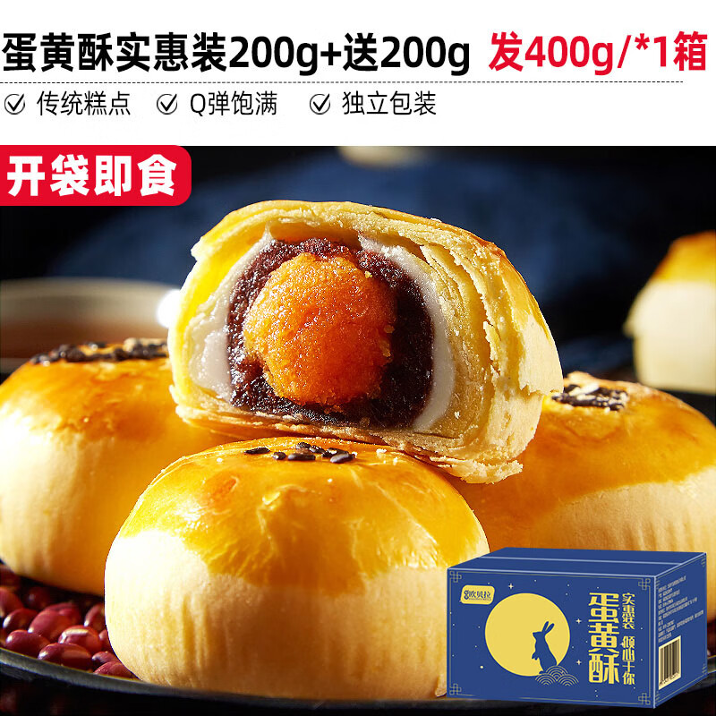 欧贝拉咸蛋黄酥雪媚娘糕点面包整箱早餐解馋零食小吃休闲食品送礼 【热卖】蛋黄酥实惠装200g+送200g 发400g/箱 仅13.9