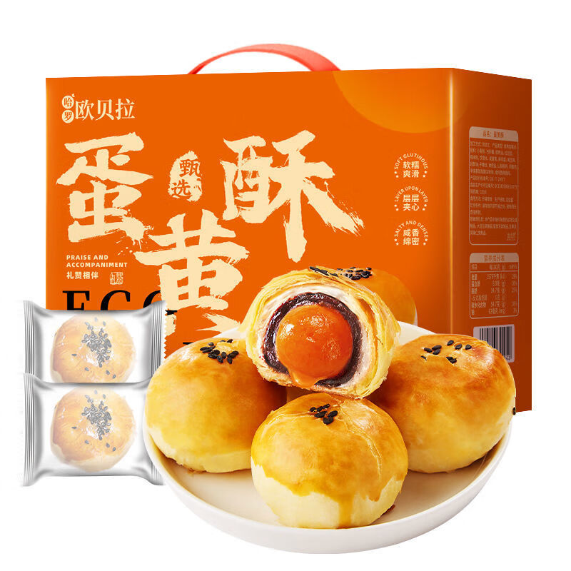欧贝拉糕点加馅点心小吃小包装儿时记忆雪媚娘咸蛋黄酥年货礼盒送礼早餐 蛋黄酥(约40g*20个) 800g