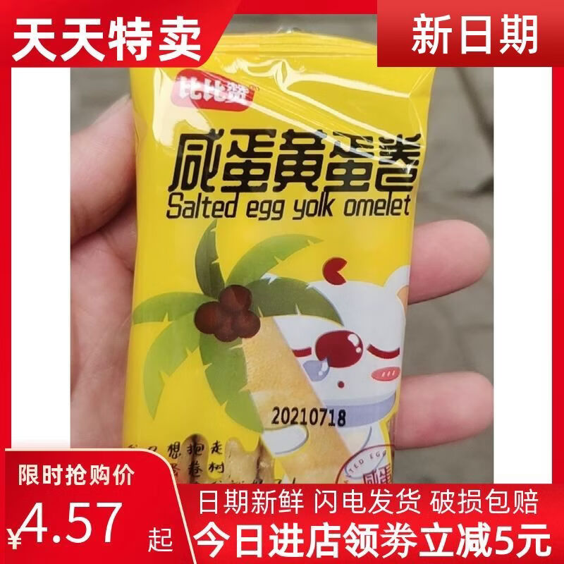 欧贝拉新货咸蛋黄蛋卷夹心卷心酥整箱饼干零食品小吃散装多口味休闲网红 蛋卷190g送190g