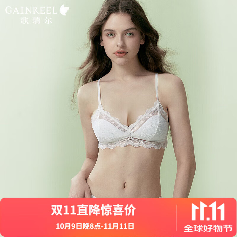 Gainreel歌瑞尔舒适透气性感蕾丝内衣女无钢圈法式三角杯柔软支撑上托减龄文胸罩 珍珠白220371A 85C