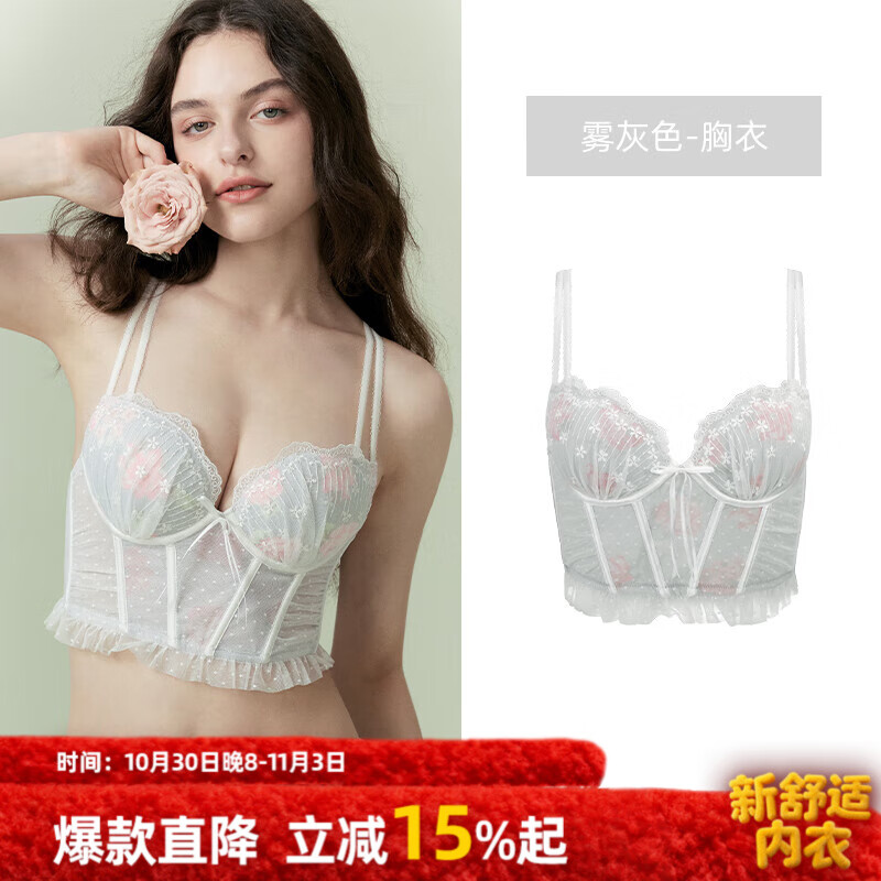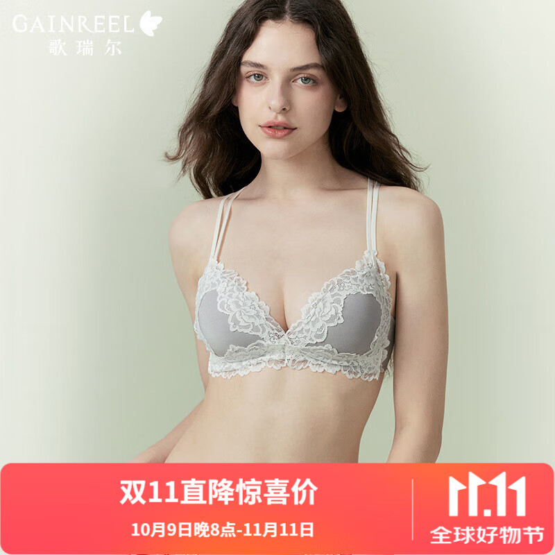 Gainreel歌瑞尔歌瑞尔蕾丝法式田园风内衣女裸感透气小胸聚拢2024新款爆款文胸罩 雾灰色 小胸衣 80B